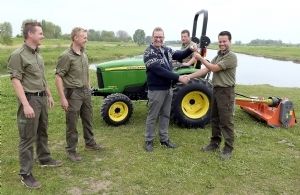 Boswachter Bart Portzgen heeft samen met Jos Schenkeveld, Henk Vink en Jochem de Graaff, de nieuwe John Deere 3036E met klepelmaaier in ontvangst mogen nemen.
