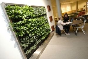 Studenten van de opleiding Business, Building & Technology van Saxion Hogeschool Enschede voeren gedurende drie jaar metingen uit naar de effecten van een verticale plantenwand van 8 m2, aangelegd in de school.