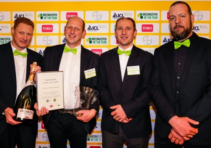 Als onderdeel van de beoordeling bezocht de jury ook de golfbanen. En hoewel zij er zich van bewust is dat het bezoek aan de golfbaan een momentopname is, liet ze tijdens de uitreiking niet onbenoemd dat de 'Arjens greens' er "uitmuntend" bijlagen. Gemene deler Alle kandidaten hebben zich goed ontwikkeld in de manier waarop zij de baan beheren, vindt de jury. Westeneng, maar ook de andere kandidaten werken volgens greenkeeping 'nieuwe stijl', met de nieuwste technieken en met de Green Deal als thema. Arjen Westeneng mag zich als winnaar in het rijtje scharen van Koert Donkers, Kristian Summerfield, William Boogaarts en Vincent de Vries. De verkiezing werd wederom mogelijk gemaakt door de sponsors Toro, ICL Specialty Fertilizers en Bayer. Namens Greenkeeper gefeliciteerd met de mooie titel, Arjen! Hieronder een impressie van de avond. Klik op de afbeeldingen voor een vergroting.