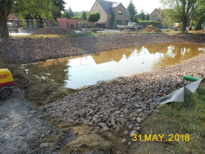In de Duitse plaats Petersroda heeft Rootbarrier een waterdoorlatende worteldoek geplaatst. In de vijver waren de wortels van het riet door de leenbodem heen gegroeid.
