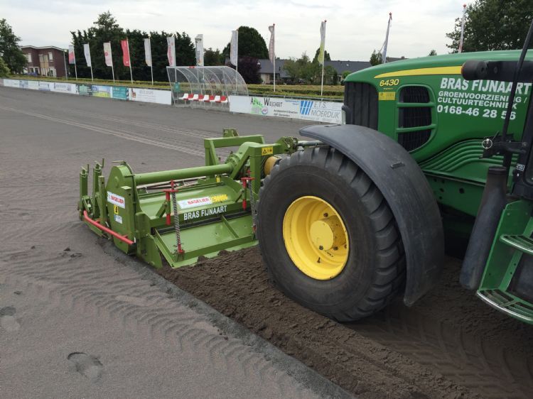 Jansen knikt: 'Daarom moet je de grond weer een beetje op peil brengen. We hebben bij de aanleg DCM Vivisol toegevoegd om het bodemleven te verrijken, en een startmeststof om een goede basis te creëren voor het O2-veld. De bodem moet zich nu gaan ontwikkelen. Er komt een punt waarop er ineens een boost plaatsvindt doordat er vanaf het begin zuurstof in de bodem zit. Wortels van wel 18 cm zijn mogelijk bij een O2-veld.' Koolen waarschuwt: 'Je kunt omwille van de groene kleur nog zo lang mogelijk na-mesten in het najaar, maar dat levert geen duurzame kwaliteit op. Dan krijg je een grasmat die visueel mooi is, maar niet sterk, omdat de wortels maar pakweg 3 cm lang zijn. De kracht van de grasmat zit onder de grond, niet boven de grond. Daarom houden wij een veld in de winter liever wat "magerder", zodat de wortels op tijd actief worden. Na de winter moet je natuurlijk wel op tijd bemesten.'