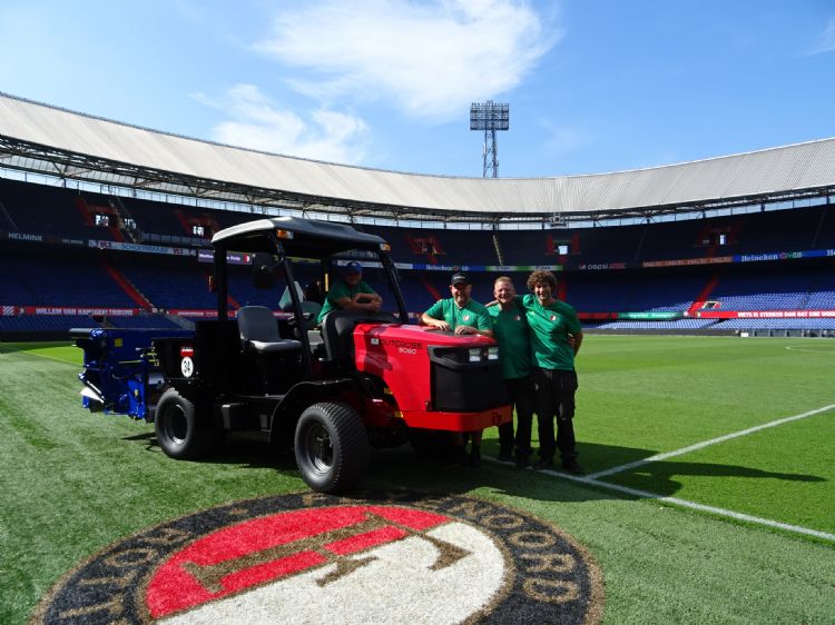 Het Feyenoord-stadion De Kuip kreeg vorig jaar voor de zesde keer op rij de prijs voor het beste veld van de eredivisie. De schaal, uitgereikt door de Vereniging van Contractspelers (VVCS), is een pluim op de hoed van grasmeester Erwin Beltman. En van zijn machinepark, waaronder de gloednieuwe Toro Outcross.