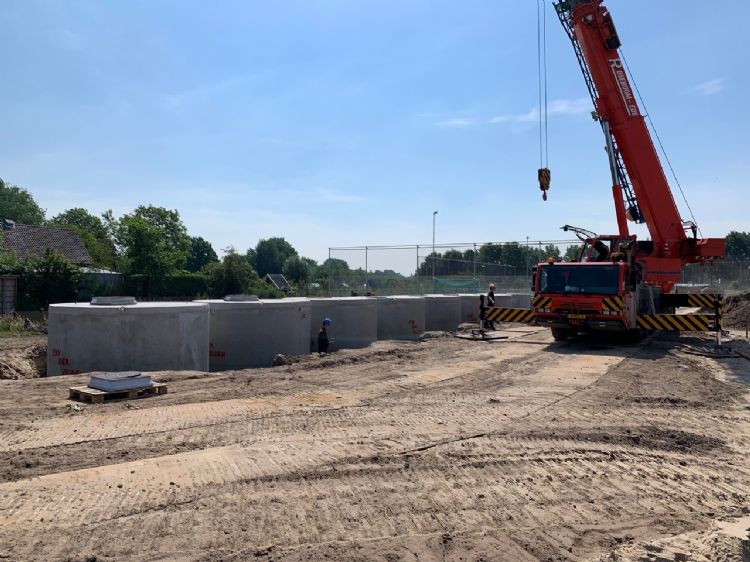 | | De acht waterkelders vormen de ondergrond voor de tribune. |