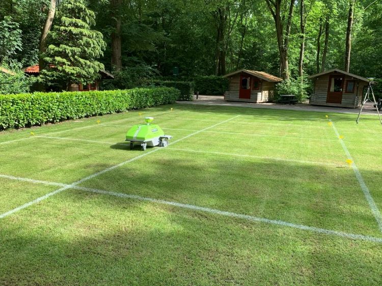 Dus er is geen extra gps-ontvanger nodig voor een betere ontvangst? Kunnen bomen of flatgebouwen voor verstoring zorgen? Bogaerts schudt zijn hoofd. 'Bomen en flatgebouwen kunnen altijd zorgen voor een beperking van de gps-signaalontvangst. Dat geldt voor alle apparatuur die werkt met gps-signalen, of het nu gaat om belijningrobots, machines voor de aanleg van sportvelden, wegenbouw enzovoort. Een extra ontvanger heeft geen meerwaarde, omdat ook deze afhankelijk is van de aanwezigheid van een gps-signaal. Samengevat: wanneer er geen gps-signaal is, kan je het ook niet optimaliseren. Wij hebben onze technologie hiervoor verbeterd door het ontwikkelen van nieuwe algoritmen in de software van de robot. Wanneer er minder of onvoldoende gps-bereik is, schakelen wij over op een ander algoritme, waarbij de robot minder afhankelijk is van de gps-signalen. Het resultaat is dat wij dankzij deze doorontwikkeling een veel hogere nauwkeurigheid behalen op plaatsen met een verminderde gps-ontvangst. Een extra gps-ontvanger hebben wij dus niet nodig.'