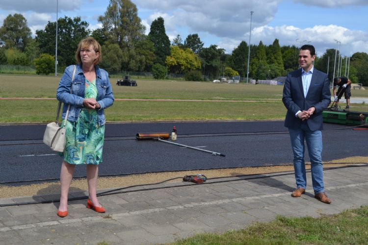 Op de dag van ons bezoek aan Venlo, medio juli, zijn de werkzaamheden in volle gang. Trots kijken de gemeentelijke wethouders toe. Alexander Vervoort, wethouder sport: 'Voor Venlo is dit een mooi moment om te laten zien dat we onze nek uitsteken, om op duurzame wijze hergebruik te maken van bestaande middelen en te voorkomen dat er gesleept wordt met nieuwe aanvoer om een baan aan te leggen. Dit is een heel mooie pilot, waar de rest van Nederland en de wereld zijn voordeel mee kan doen. Als Venlo laten we zien dat het niet alleen mogelijk is, maar dat het ook werkt.' Marij Pollux, wethouder duurzaamheid, vult aan: 'Duurzaamheid is inmiddels een item in meerdere portefeuilles. Hier wordt op een goede manier omgegaan met een afvalproduct, dat gebruikt wordt om iets nieuws te maken. Het is fijn dat Venlo kan laten zien dat we ook op dit vlak ambities hebben. We denken bij duurzaamheid vaak aan minder afval produceren, maar je kunt ook kijken naar hergebruik van bestaande producten.'