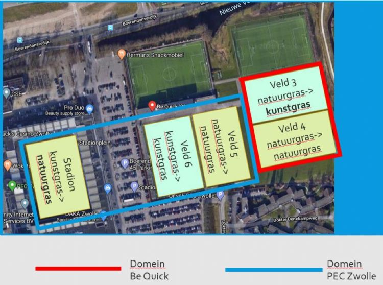 In 2019 benaderde de club CSC Sport met de ambitie om de stap terug naar natuurgras te zetten. Namens CSCsport•GreenFields voerden Theo Ceelen en Gerrit van Weeghel gesprekken met Jeroen van Leeuwen (algemeen manager bij PEC) en Alfred Meiberg (van Meiberg Groen, verantwoordelijk voor het onderhoud van de bijvelden). Zoals bij de meeste clubs die op natuurgras willen spelen, was de capaciteit bij PEC het grootste probleem. Op het kunstgrasstadionveld werkt PEC Zwolle het leeuwendeel van de wedstrijden en trainingen af. Bijna tweeduizend uur per jaar staan er 22 man op het veld. 'Het zijn de ultieme benutters van kunstgras', vertelt Gerrit van Weeghel van CSCsport•GreenFields. 'Samen met PEC Zwolle hebben we voor extra capaciteit gekeken naar de velden die naast het stadion lagen. Dat waren er zes, allemaal van de gemeente Zwolle, met amateurvereniging Be Quick '28 als bespeler, die daarmee eigenlijk wat te veel capaciteit voor haar ledenaantal had. Het idee was om PEC Zwolle minimaal twee van die zes velden te laten gebruiken.' PEC ging hierover in gesprek met Be Quick '28 en met de gemeente Zwolle, die na het gebruikelijke besluitvormingsproces haar akkoord gaf.