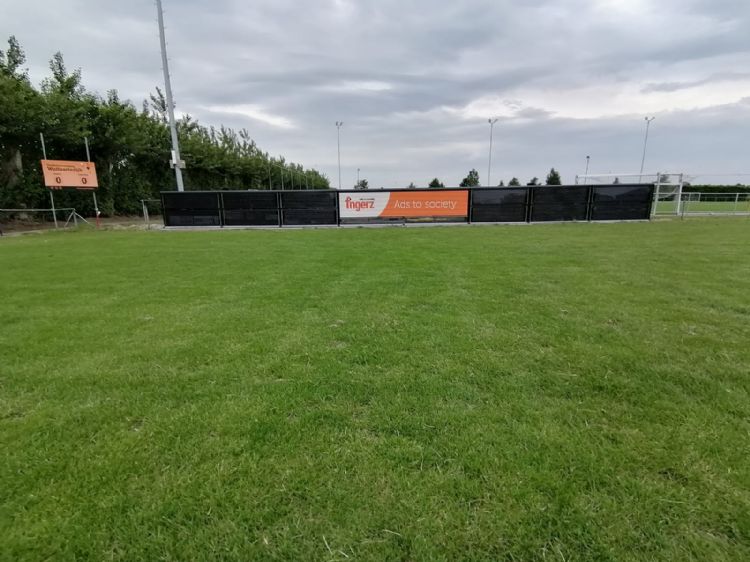 | | Geen traditionele reclameborden, maar zonneboarding langs het hoofdveld |