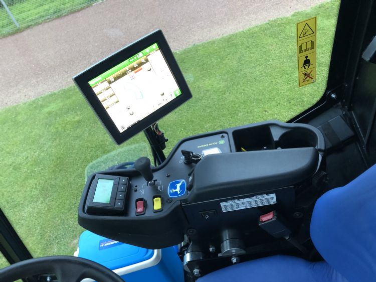 Dick Groenenboom beaamt dat de ontvangst van de machine prima is. '99 van de 100 keer heb ik geen last, terwijl we bij het maaien best wat bomen om ons heen hebben.' Sturen hoeft hij tijdens het maaien niet te doen; dat gaat op gps. Aan het eind van de baan neemt Groenenboom de besturing weer over om de bocht te maken. Hij legt uit: 'Bij het maaien van de banen sla ik telkens één baan over, dus ik maai de eerste, derde, vijfde baan en zo verder. Aan het eind rijd ik er tussendoor en maai ik de andere banen; dat kan ik op gps precies doen. Het maait een stuk sneller en je hoeft met deze techniek niet zo scherp te sturen, waardoor het gras wordt gespaard.' Het is bovendien handig dat zowel de machine als de technologie van John Deere komt, benadrukt Marinus Groenenboom. 'Voor ons is dat een groot voordeel. John Deere heeft zelf de maaier en gps ontwikkeld. Wij hebben daardoor ook maar met één partij te maken.'