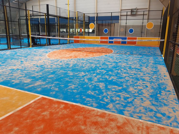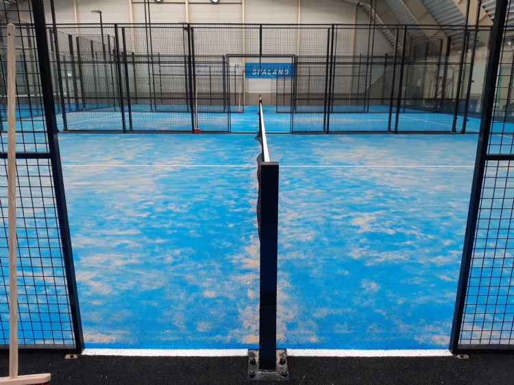 Op 1 augustus kregen Melaard en De Krom de sleutel van hun nieuwe accommodatie. Op die datum begon Padelbouw BV ook meteen met de werkzaamheden. In ruim twee maanden tijd zijn de oude tennisbanen verwijderd en zes padelbanen aangelegd. Drie daarvan zijn uitgevoerd met Redsport Pro, kunstgras dat ingestrooid is met zand. Een vierde Redsport Pro-mat heeft dezelfde ondergrond, maar een verstelbaar net dat tot 3 meter hoog gehangen kan worden. Daardoor is deze baan multifunctioneel te gebruiken voor badminton, volleybal en eventuele andere spelvormen. Het centercourt in de hal is Redsport Pro Panorama. Deze baan heeft een speciale World Padel Tour-grasmat van Mondo: STX Supercourt. Het centercourt voldoet aan alle eisen van de World Padel Tour, ook met uitloop, en zal dus veel toppers aantrekken. Ook in het oog springend is de zesde baan, een ASM Playce-padelbaan. Deze kleurrijke baan is geschikt voor allerlei spelvormen. De ASM-vloer ligt tevens rond de Playce-baan; de rest van de hal is gevuld met short-kunstgras.