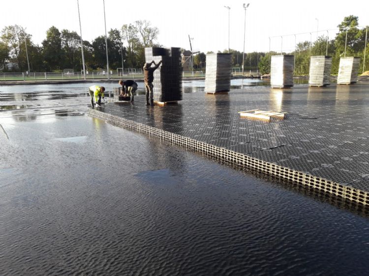 CSC Sport-Greenfields ziet dat dit soort sportvelden met waterberging steeds vaker worden aangelegd in Nederland. Eerder bouwde de aannemer al soortgelijke hockeyvelden voor waterterugwinning bij Xenios in Amsterdam en RGHC Tempo in Rotterdam. Naast de berging heeft LHC Roomburg nu ook twee nieuwe watervelden, die inmiddels in gebruik zijn. Het zijn watervelden van het type TX Pro Plus van Greenfields, net als het waterveld dat LHC Roomburg al had liggen. Voor die mat is heel bewust gekozen, legt Ceelen uit: 'Kenmerkend voor de TX Pro Plus-velden is dat deze 1,5 miljoen vezels hebben, zodat ze het sproeiwater goed vasthouden. Je hoeft daardoor maar één keer per wedstrijd te beregenen; daar heb je zeker genoeg aan.'