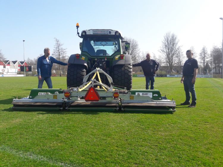 Vanwege het probleem met transport besloot Dirksen toch naar andere opties te kijken. Op een beurs kwam hij cirkelmaaierfabrikant Major tegen, maar overtuigd was hij nog altijd niet. Een bezoek aan de gemeente 's-Hertogenbosch, waar ook een Major draaide, gaf de doorslag. 'We zagen daar een heel mooi maaibeeld; eigenlijk viel me dat ontzettend mee. Dat heeft ons aan het denken gezet. Bij ons liggen de verste velden zo'n 17 kilometer uit elkaar. Met een trekker voor de cirkelmaaier heb je dat snel overbrugd. En een trekker kun je ook gebruiken om te rollen, slepen en versnipperen - allemaal winst. We hebben daarom een Major-maaimachine aangeschaft in combinatie met een Fendt 208.' Deze combinatie draait inmiddels bijna drie jaar in Ede, naar tevredenheid van de clubs, zegt Dirksen. 'We hadden van de verenigingen wel wat commentaar verwacht, want daar lopen dagelijks vrijwilligers vol passie op de velden. Maar ook hen viel het 100 procent mee.'