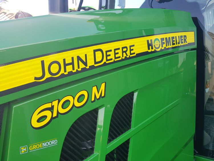 Een samenloop van omstandigheden, zo vat Meijerhof de aanschaf van de nieuwe machines samen. Zijn bedrijf had een trekker staan die aan vervanging toe was. Hofmeijer zocht contact met John Deere-dealer Groenoord voor een nieuwe machine. Dat werd de 6100M van John Deere, waarvan Hofmeijer er uiteindelijk ter uitbreiding zelfs twee aanschafte. De modellen zijn op de motorkap voorzien van Hofmeijer-stickers in John Deere-stijl en zijn klaar om hun eerste meters te maken. Directeur Meijerhof legt uit: 'We gaan deze machines inzetten op sportvelden. Het voordeel van de trekkers die we gekocht hebben, is dat er gps op zit. De machine zoekt altijd de combinatie van exact rijden en de juiste snelheid, zodat je geen overlap hebt in je werk.'