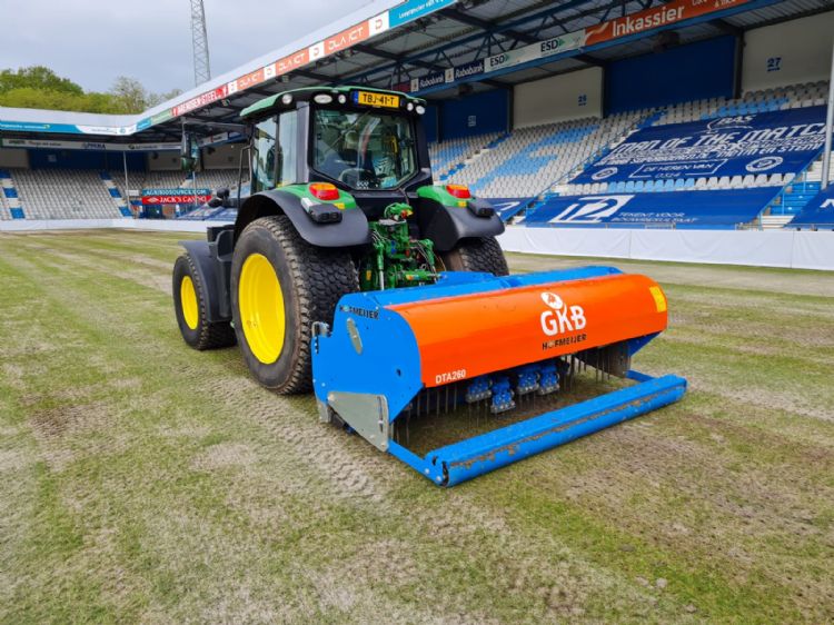 De JD 6100M en DTA260 aan het werk in stadion De Vijverberg van De Graafschap