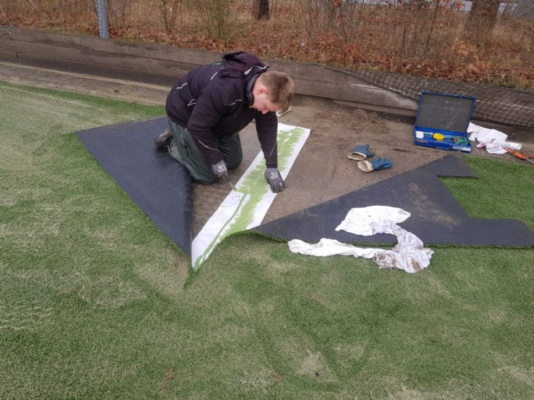 Reparaties aan kunstgrasmatten, onderdeel van een onderhoudspakket