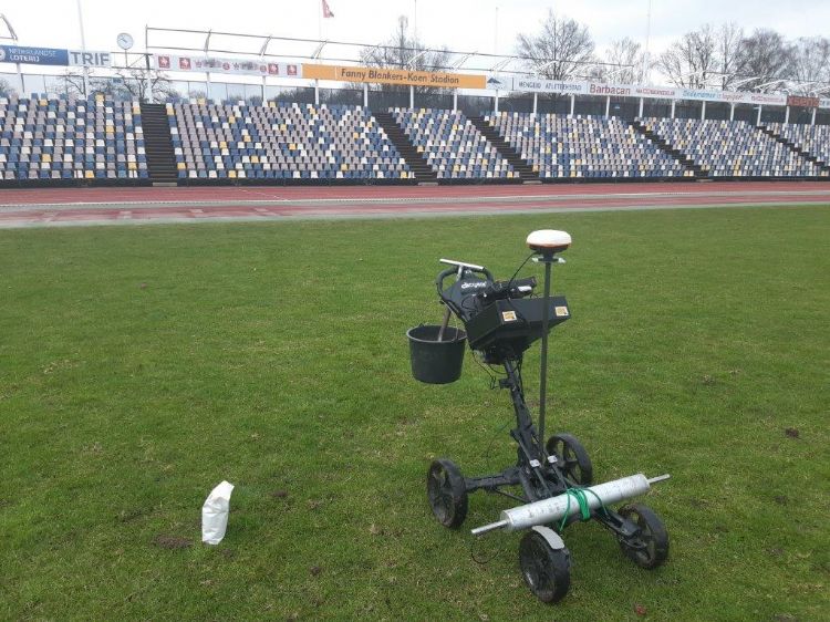 Bodemscan van de grasmat in het Abe Lenstra Stadion