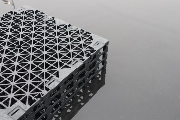 Het water onder het veld bij OMHC wordt opgevangen in een krattenstelsel. Zowel de bouw van het kunstgrasveld als de aanleg van bergingssysteem is, zoals gezegd, verricht door CSC Sport. Directeur André Ceelen legt uit welke systemen er zijn. 'Onder de mat ligt standaard een lavalaag. Daaronder kan er voor de berging van water gekozen worden uit meerdere opties.' Hij noemt er drie. Ten eerste grauwacke gesteente: 'Dit is grof gesteente met veel intercellulaire ruimte tussen de stenen waardoor het een groot waterbergend vermogen heeft.' Ten tweede grof lava: 'Eveneens relatief veel intercellulaire ruimte tussen de lavakorrels en die korrels kunnen zelf ook veel water opnemen. Daarmee heb je 50 procent waterberging.' Ten derde opvang in kratjes: '100 procent waterberging.'