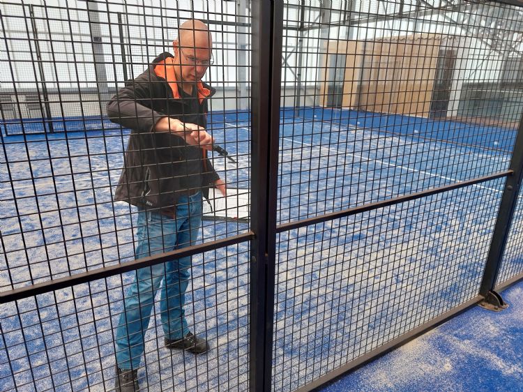 Van Aken: 'Al in 2016 bouwden we de eerste banen in Nederland. Aanvankelijk kochten we die van een Spaanse leverancier. Spaanse producenten leveren aan veel landen, maar klimaat en bodem zijn in Nederland vrij specifiek en over het algemeen heel anders dan in Spanje. Ook de bouwregelgeving waarmee je te maken hebt, verschilt enorm. Daarom zijn we al snel begonnen met ons eigen ontwerp, dat we sinds 2018 bouwen. Hiervoor hebben we een aantal vaste toeleveranciers. Met de meer dan tweehonderd banen die we dit jaar bouwen - opnieuw bijna een verdubbeling ten opzichte van het voorgaande jaar - kunnen die ook serieus aan de slag. Zo heeft het voor hen zin om te investeren in speciale machines, zoals een lasrobot. Die draagt bij aan een efficiënte productie en goede afwerking. Zo hebben we een in alle opzichten geheel eigen, gepatenteerd product ontwikkeld.' De vroege start met eigen padelbanen levert naar zijn zeggen een prettige voorsprong op ten opzichte van andere bouwers. Veel daarvan zijn nog steeds afhankelijk van import, schetst hij. 'In de periode 2016-2018 hebben we al samen met toeleveranciers gewerkt aan de ontwikkeling van een zo goed mogelijk eigen antwoord op de Nederlandse omstandigheden. Na het eerste model bleven we bovendien doorontwikkelen. Bijvoorbeeld aan verschillende oplossingen voor gebieden met meer of minder wind, met een stevige of slappe bodem en met verschillende risico's op corrosie. Direct aan de kust heb je bijvoorbeeld veel meer met corrosie te maken dan in het binnenland. Een andere reden om te blijven werken aan nieuwe versies is de voortgaande ontwikkeling van regelgeving en normering, die eigen is aan een jonge sport in opkomst. Wij vervullen hierin zelf ook een rol, door onze nauwe samenwerking met verschillende organisaties zoals de KNLTB, NOC*NSF en Kiwa Isa Sport. Het nauwe contact dat we sinds jaar en dag hebben met de groundsmen bij clubs helpt hierbij ook.'