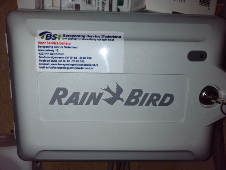 De bestaande beregeningsautomaat werd vervangen voor een RainBird ESP-ME, waarmee de beregening middels een app kan worden aangestuurd.