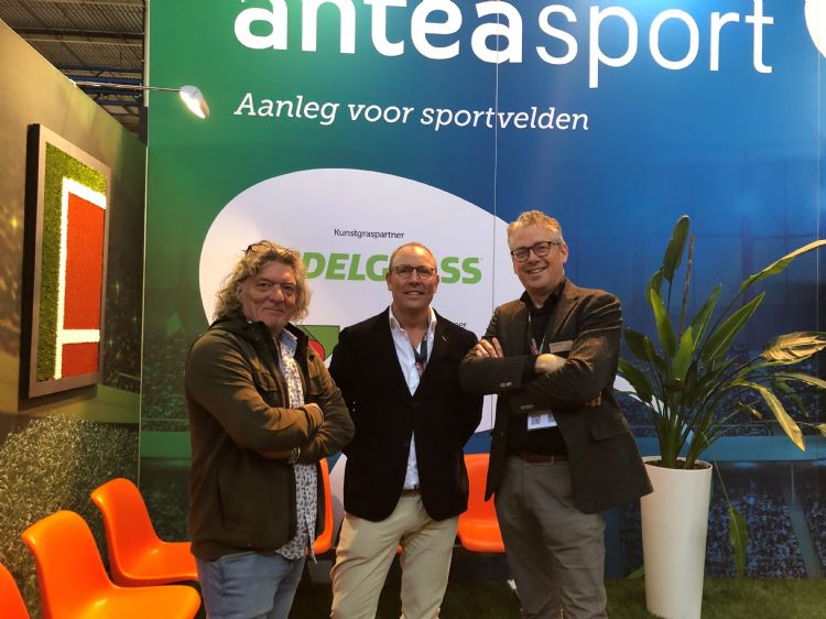 | | Ed Korstanje van J&E Sport, Eric van Roekel van de GBN Group en Gosewin Bos van Antea Sport in een gezellig onderonsje. |