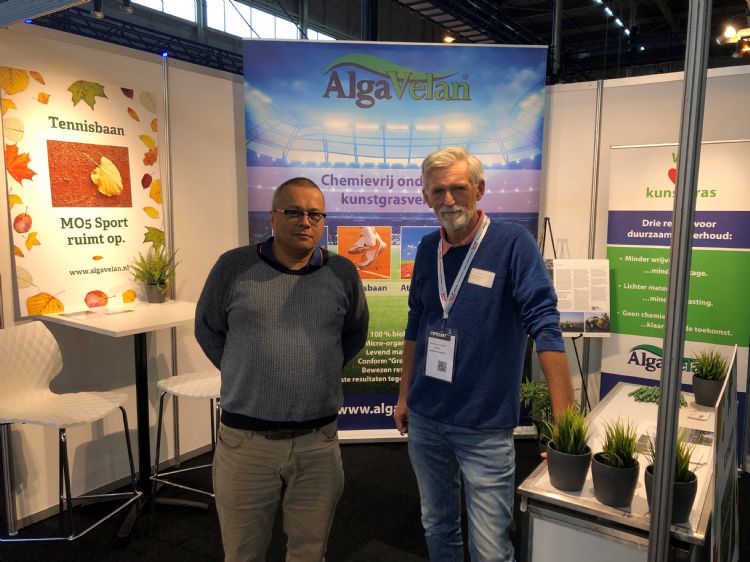 | | Adviseur Martin Knot en directeur Ewoud van de Wetering van AlgaVelan weten hoe je op een natuurlijk manier buitenbanen en sportvelden kunt onderhouden en vrij kunt houden van mossen en algen. |