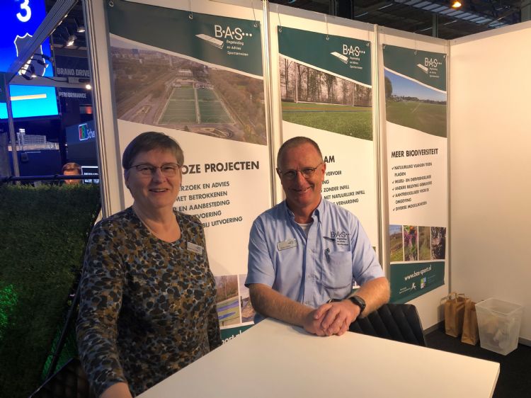 | | Marianne de Gelder en Bertus Carelse van B.A.S. Begeleiding en Advies Sportterreinen ontmoetten diverse opdrachtgevers op de beursvloer. |
