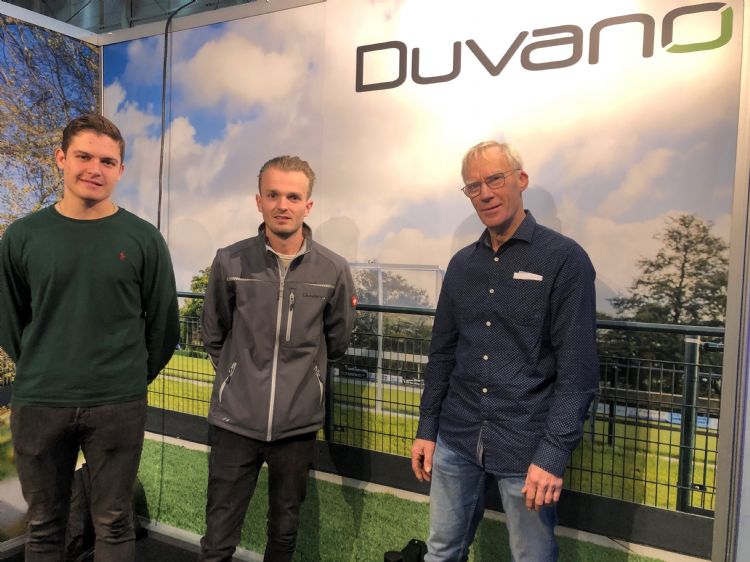 | | Stagiaire Pim Mommers, operationeel manager Mark Pels en directeur Johan van der Stappen bemanden de stand van Duvano. |