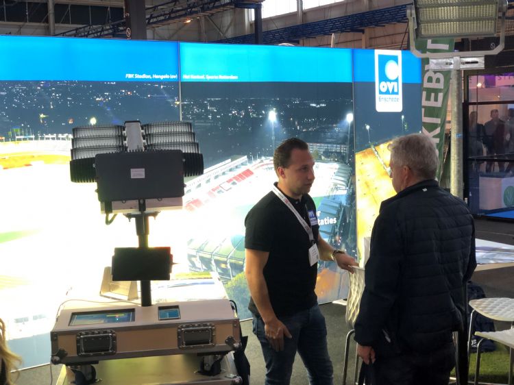 | | Sportverlichting.com had groots uitgepakt op de beurs met een enorme stand. Martin Bolderman staat naar eigen zeggen op het punt om 'de wereld te veroveren' met zijn ledlampen. |