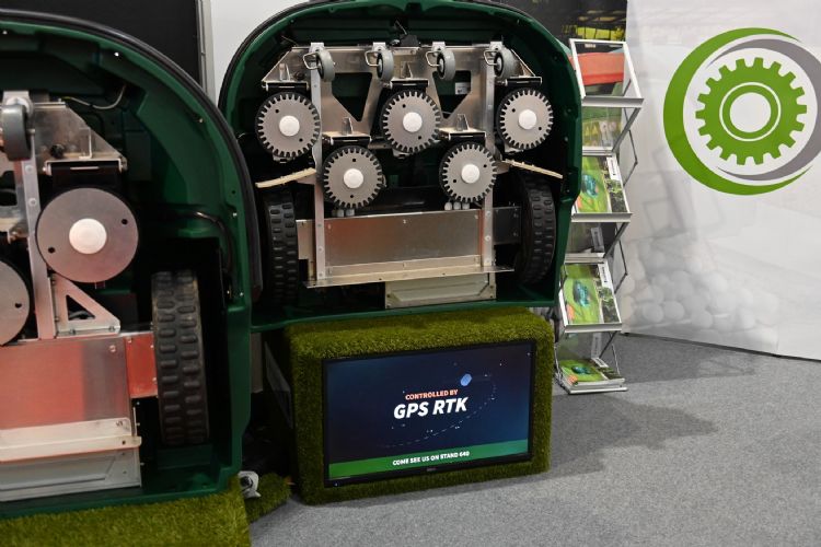 In het greenkeeper-walhalla dat Engeland heet, is natuurlijk weinig ruimte voor robots. Dat wil echter niet zeggen dat ze er niet waren op de beurs. Het Belgisch-Japanse Belrobotics Yamabiko heeft nu ook zijn maaiers voorzien van gps-rtk (rtk staat voor real time kinematic). De maaiers kunnen daardoor ook banen en zelfs logo's uitmaaien in de baan. De installatie van een perimeterdraad kan achterwege blijven en het is mogelijk om in dezelfde tijd meer gras te maaien. De nieuwe techniek werkt met een vaste ontvanger, die op het complex geïnstalleerd wordt. Deze communiceert met verschillende satellieten en is daarmee in staat om te maaien met een nauwkeurigheid van 2 cm.
