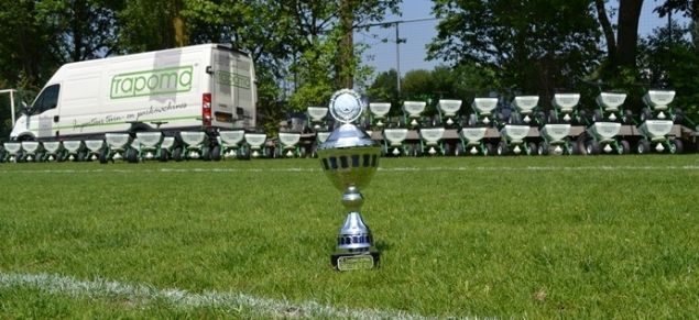Handelsmaatschappij Frapoma zette de 40 kunstmesstrooiers nog even op rijtje na afloop van de Demodag Sportvelden.