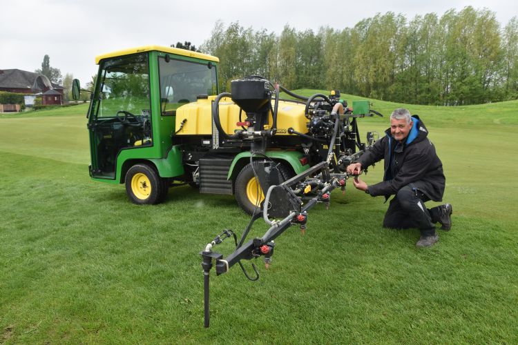 Het optionele Ezy-Lift PG 850-systeem, dat gebruikmaakt van een elektrische lier en een elektrohydraulisch hefframe, maken het in- en uitladen van voorwerpen op het laadplateau gemakkelijk. Denk daarbij aan kleine pallets, zoden voor bunkeraankleding of plaggenstekers en meer. Het systeem heft voorwerpen tot 385 kilogram. AHA De Man verruilde dit voorjaar drie John Deere-ProGators met veldspuit voor drie vrijwel identieke machines. Het betreft de John Deere 2030A 4WD-diesel ProGator, uitgerust met HD200-spuitinstallaties. De golfbaanaannemer gebruikt ze op drie grote golfbanen en vult de tank met biologische TRAXX HVO100-diesel om de CO2-uitstoot flink te verminderen.