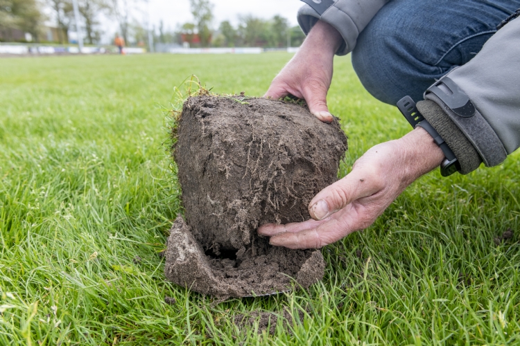 We praten verder met Schinkel. 'Mooi als we van kunstgras naar natuurgras kunnen. Daar word ik blij van. Maar dat gaat natuurlijk niet altijd; soms is het benodigde aantal bespelingsuren gewoon niet haalbaar op natuurgras. Dan is natuurgras geen optie.' Dat natuurgras en kunstgras niet vergelijkbaar zijn, qua kosten zit er een enorm verschil tussen beide. Bij de aanleg van een kunstgrasveld gaat het snel richting de vijf ton in euro's. En indien voor kurk wordt gekozen, komt er gemakkelijk een ton bij (50K voor aanleg en 50K voor onderhoud). En dan schrijf je in tien tot vijftien jaar de helft van het bedrag af. Bij een O2-veld liggen die bedragen veel lager. Afschrijving is er niet en qua aanschaf ligt het bedrag, afhankelijk van de ondergrond, tussen de 70K en 90K. De vraag is of de noodzaak van extra bespelingsuren echt zo groot is om een investering in kunstgras te rechtvaardigen. Ook op andere plekken in het land is men enthousiast. Geert van Kerkvoorde, accountmanager DCM in het noorden en oosten, heeft de afgelopen jaren veel projecten begeleid. Een van de grootste O2-projecten was de aanleg van tien O2-velden in 2021 binnen de gemeente Coevorden. Van Kerkvoorde is en blijft betrokken bij het beheer en onderhoud van de velden. 'Ook hier zie je de velden droog en stabiel blijven. Clubs en spelers zijn enthousiast en de velden voldoen aan de wensen en eisen. Belangrijk is dat men zich wel blijft realiseren dat het natuurgras is en dat zo'n veld het eerste jaar op gang moet komen, net als een natuurgrasveld na aanleg. Bemesting is belangrijk; lava geeft extra kali af. Hier moet je rekening mee houden. Ook wat extra fosfaat is het eerste jaar wenselijk voor een snelle en vlotte groei van het gras. Samen met mijn collega Gerrit Klop zijn we altijd actief betrokken bij de aanleg, maar ook na de aanleg blijven we adviseren en begeleiden.' Een andere DCM-accountmanager, die vanaf het allereerste begin actief is geweest met Lava Oxygen, is Gerrit Klop. 'Twintig jaar geleden zijn we begonnen met de toepassing van Lava Oxygen in de toplaag. Een van de eerste velden was in Lelystad. Dit veld ligt er nog steeds uitstekend bij. De lava blijft gewoon op z'n plaats in de toplaag en hoeft niet te worden aangevuld, zoals zand. In 2016 hebben we van de toepassing van Lava Oxygen een concept gemaakt wat heeft geresulteerd in meer dan honderd velden in zeven jaar.' We gaan terug naar Schinkel in Castricum. Heb je nog tips voor de aanleg en het onderhoud van een O2-veld? Schinkel: 'Je gaat je manier van werken al meer finetunen, is mijn ervaring. Ik gebruik ook DCM Vivimus als extra product bij de doormenging en ik voeg klaver toe aan het graszaad voor een meer gesloten grasmat en als groenbemester. Verder ben ik nog steeds overtuigd van de meerwaarde en blijf ik Lava Oxygen gebruiken bij iedere natuurgrasveldrenovatie.'