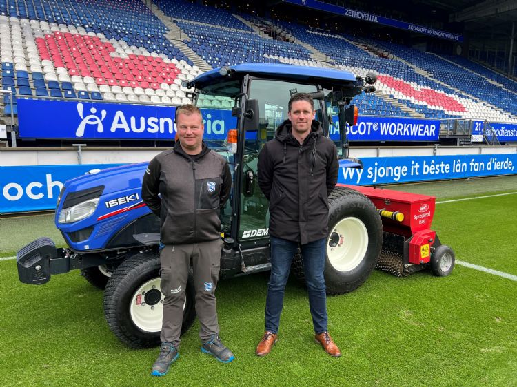 'Dat klopt,' beaamt Nanne Stiemsma van DEM BV. Stiemsma is accountmanager bij DEM, lokale dealer van Redexim en andere merken. 'Naast het Redexim-machinepark hebben we een trekker van Iseki geleverd.' Stiemsma kent Hilarius nog uit de tijd dat de fieldmanager hoofdgreenkeeper was. 'Destijds heb ik hem diverse machines verkocht en ook in zijn tijd bij SC Heerenveen hebben we een en ander geleverd. Deze machines waren specifiek voor gebruik in het stadion. Nu het onderhoud van het trainingscomplex erbij is gekomen, is er vanzelfsprekend meer capaciteit nodig.'