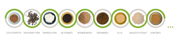 Het begint allemaal bij de grondstoffen. Deze grondstoffen zijn afkomstig uit de voedingsindustrie. Die kunnen plantaardig zijn of dierlijk. Een plantaardige grondstof is bijvoorbeeld vinasse, een restproduct dat ontstaat bij de verwerking van suikerbieten. Maar ook druivenpitten of cacaodoppen zijn voorbeelden van plantaardige grondstoffen. Voorbeelden van dierlijke grondstoffen zijn beendermeel en verenmeel, restproducten uit de vleesindustrie.