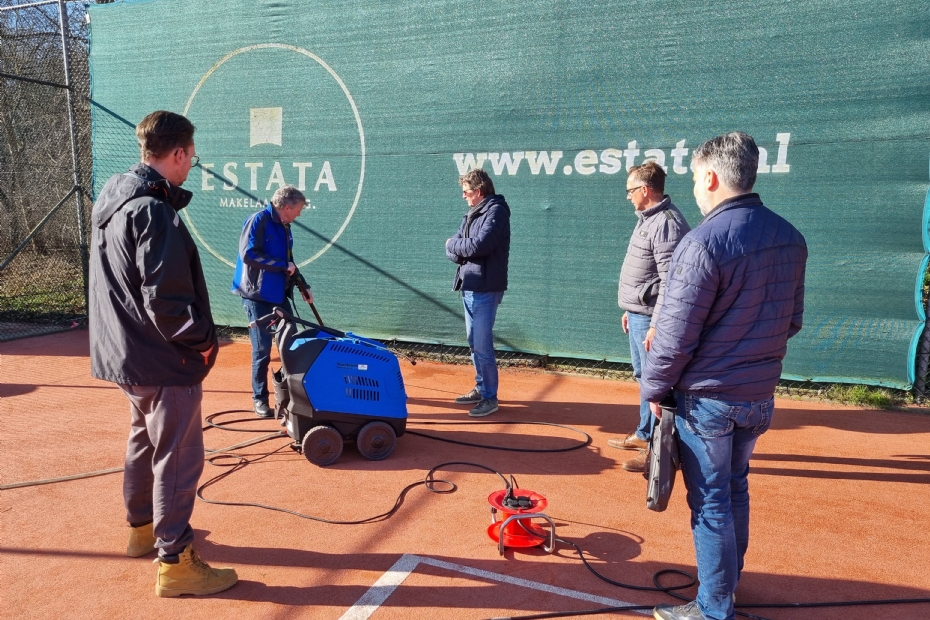 Gijs Peelen is accommodatieadviseur bij de KNLTB en was bij de test in Den Haag aanwezig. 'Als bond sluiten wij ons aan, samen met NOC*NSF en de andere sportbonden, bij de programma's binnen de Routekaart Verduurzaming Sport, waaronder ook het deelakkoord over milieuvriendelijk beheer. Ook proberen wij zo veel mogelijk te verbinden en bieden in dat kader graag een platform voor innovaties.' Zo is de aanpak van Algavelan in een artikel van de tennisbond verschenen en mede na het lezen van dit stuk kwamen de tennissers uit Den Haag op het idee om Van de Wetering uit te nodigen. Peelen: 'Er wordt steeds meer kennis opgedaan als het gaat om milieuvriendelijk beheer van tennisbanen. Wij kijken graag naar de best practices op dit gebied en ik ben dan ook heel benieuw naar het uiteindelijk resultaat van deze heetwaterproef in Den Haag.'