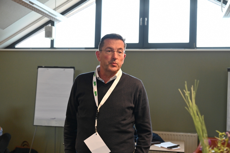 Na de ontvangst toog het gezelschap een etage hoger waar hoofdredacteur Hein van Iersel iedereen welkom heette. De eerste spreker was Arijan van Alphen, hoofdgreenkeeper van Stichting Golfsport Oosterhout. Hij vertelde over de inzet van de Spot Sprayer om pleksgewijs onkruid aan te pakken op de fairway. De machine scant de bodem en ziet het verschilt tussen een grasplant en onkruid. Het betekent volgens hem een reductie van 90 procent op het gebruik van gewasbeschermingsmiddelen. Hij is het apparaat gaan inzetten, nadat hij acht jaar lang geen onkruidbestrijding had gedaan en de onkruiddruk nu toch echt te hoog werd.