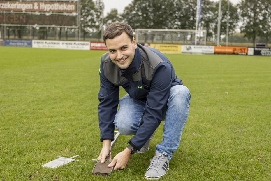 'Wij zijn al lang geen student meer,' lacht Wilbert Scheerders (27). 'Eigenlijk vind ik young professional veel mooier, en dat zijn we ook gewoon. Maar goed, het is maar een titel.' Begonnen als vakantiekracht heeft Scheerders het ondertussen geschopt tot projectleider/uitvoerder bij Van Wijlen, een aannemersbedrijf uit Sprang-Capelle. Met 270 sportvelden in beheer vindt hij het elke dag weer een uitdaging de juiste puzzel te leggen om mooi werk af te leveren. Scheerders is terecht trots op zijn sleutelrol.