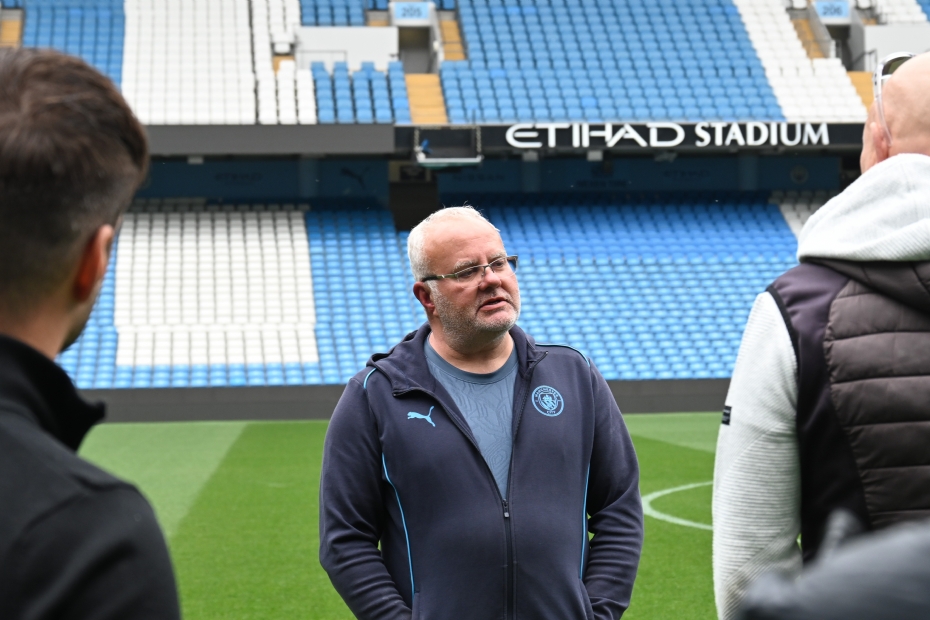 Als je wilt weten hoe goed het onderhoud van een sportveld kan zijn, is Engeland waarschijnlijk the place to be. Daar is niet alleen het meeste geld beschikbaar; de Engelse groundsmen zijn waarschijnlijk ook de meest gepassioneerde vakmensen die je je kunt voorstellen. Het begon al met de eerste bestemming: Manchester. Om precies te zijn: Manchester City, want dat is een club die de laatste jaren veel opgang heeft gemaakt. Manchester City is onderdeel van de City Football Group (CFG), een internationaal voetbalconcern dat in 2013 werd opgericht. Deze groep is eigendom van het in Abu Dhabi gevestigde investeringsvehikel Abu Dhabi United Group. Onderdeel van deze groep zijn in totaal negen clubs in Spanje, de VS, België, Italië, Japan en Frankrijk. De groep heeft een jaaromzet van meer dan 900 miljoen Engelse pond, waarvan 750 pond is toe te kennen aan Manchester City. Bij Manchester City werken ongeveer 1800 mensen.