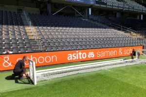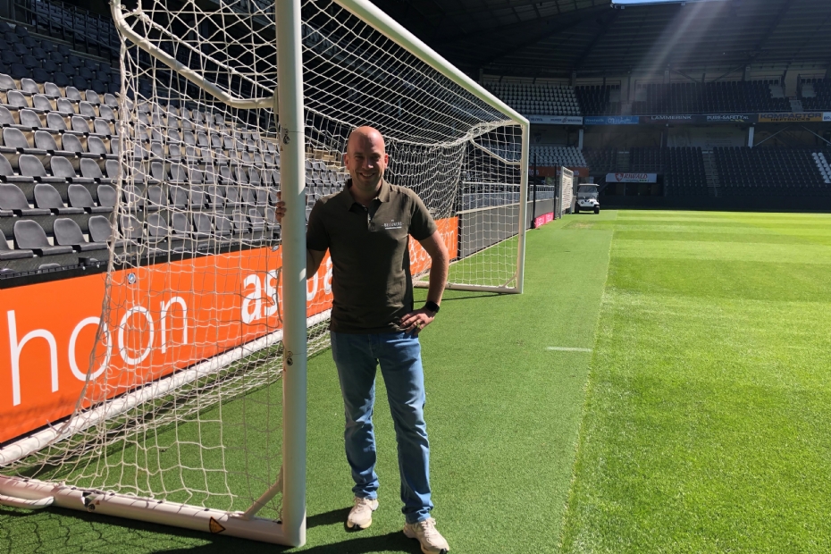 In het stadion van Heracles vertelt Jordy Scholten, mede-eigenaar van De Belijners, over deze toevoeging aan het assortiment van zijn bedrijf. 'Wij moesten twee jaar geleden bij FC Twente het veld belijnen voor een Europese wedstrijd en zagen dat fieldmanager Henry de Weert een inklapdoel gebruikte voor het inschieten van de keeper en dachten dat het wel handig zou zijn voor meer voetbalclubs, zodat zij hun vijfmetergebied tijdens de warming-up kunnen ontlasten.' Scholten weet namelijk ook dat in veel stadions er geen ruimte is om een niet-inklapbaar inspeeldoel te gebruiken. 'Je tilt zo'n doel niet makkelijk van het veld en er is vaak geen ruimte om het zodanig op te bergen dat niemand er last van heeft. Veel clubs willen wel hun doelgebied ontlasten, maar hebben domweg geen ruimte voor een extra inspeeldoel.'