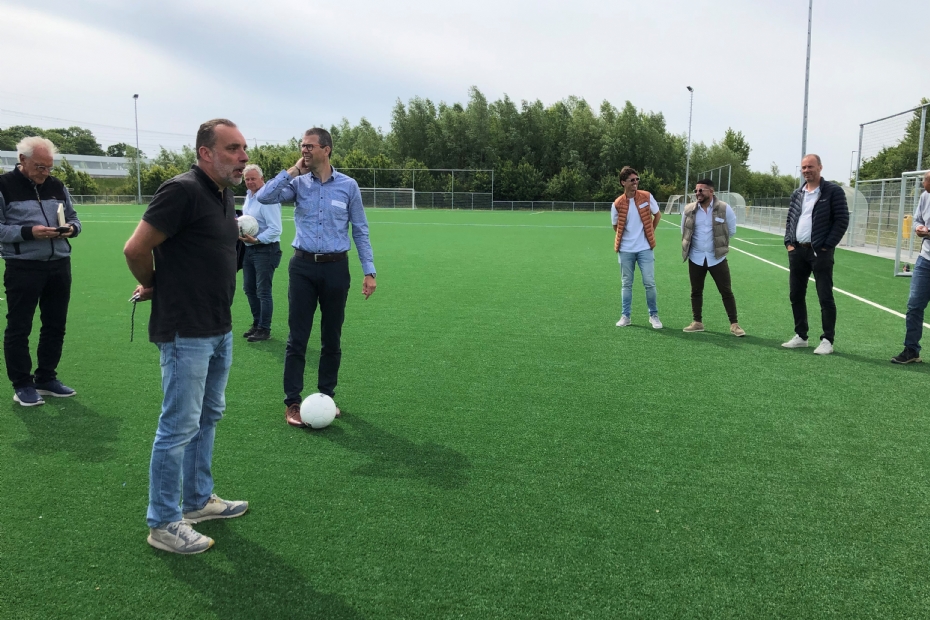 'Wat is een e-layer?' Dat is de eerste vraag die opdoemt bij een deelnemer als adviseur Joris van der Cammen de dag opent met een beknopte presentatie over de ontwikkeling van kunstgras. Een andere deelnemer meldt dat SBR- en TPE-gevulde velden nog steeds het prettigst spelen volgens voetballers en ook het goedkoopst zijn. Hoog tijd voor een rondje langs vijf verschillende kunstgrasvelden, om zelf te zien en te ervaren welke alternatieven er zijn voor SBR- en TPE- velden, die vanaf 2031 niet meer aangelegd mogen worden. Van der Cammen: 'Wij vinden het niet verstandig om nog voor dergelijke velden te kiezen vanwege de milieu-impact en het komende verbod, maar het kan natuurlijk een budgettaire afweging zijn.' In zijn inleidende praatje maakt hij verder duidelijk dat non-infillvelden nog niet officieel goedgekeurd zijn, maar dat hij wel een team kent in Best dat heel tevreden is over zo'n veld en eigenlijk nergens anders meer op wil spelen. 'Wellicht is het een optie om verschillende normen voor verschillende typen velden in te voeren, maar de KNVB wil één norm; dat is de realiteit waarmee wij moeten omgaan.'