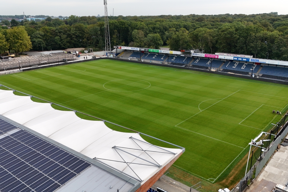 Het nieuwe stadionveld is een paar meter groter dan het oude kunstgrasveld en voldoet daarmee aan de afmetingseisen. Zo'n veldrenovatie heeft natuurlijk ook gevolgen voor de rest van het stadion. Hekwerk, riolering, asfalt en dergelijke moesten allemaal aangepast worden. Ruimtes voor de technische installaties moesten gecreëerd of geschikt gemaakt worden. Kok: 'Er komt veel bij kijken. Bovendien is er nu te weinig stroom en gas voorhanden. Dat wordt opgelost door tijdelijke voorzieningen en of aanpassingen van de installatie. Als er bijvoorbeeld nog groeilampen aangeschaft worden, is daar ook weer extra stroom voor nodig. De aansluitingen voor het plaatsen van de lampen zijn wel gerealiseerd.'