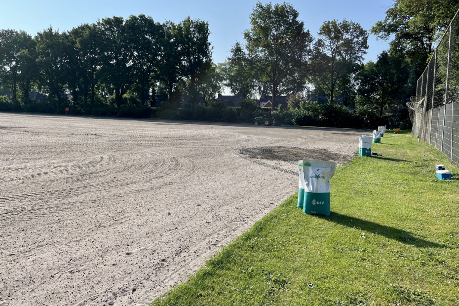 'Dit soort projecten laten mooi zien wat onze producten en expertise in het veld kunnen betekenen,' vindt Thijs Schoenmakers van DSV zaden. 'Vaak gaat de aandacht uit naar wedstrijdvelden, maar op een trainingsveld moet je het kunstje wel leren.' De renovatie begon met het verwijderen van de oude grasmat met een Fieldtopmaker, die vilt en overtollig organisch materiaal verwijdert. Daarna verkleinde een pulverfrees de achtergebleven wortels en volgde een egalisatieronde met de kilverbak.
