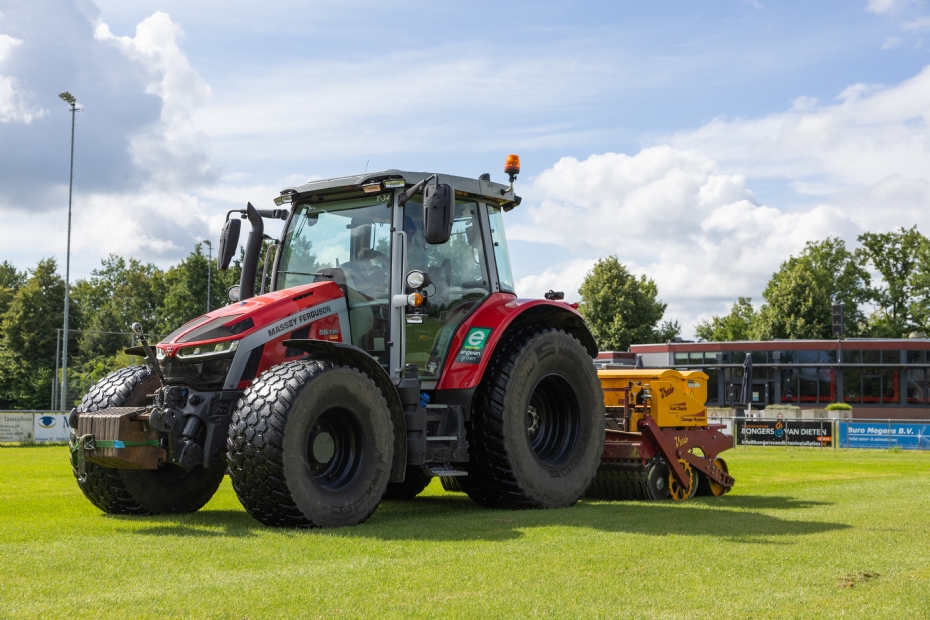 Met een strak geplande logistiek en slimme keuzes van onderhoudsperiodes voorkomt Verstegen piekbelasting. Zo begint zijn team al eind maart met doorzaaien om een voorsprong te nemen op het groot onderhoud. 'De velden die we begin maart aanpakken, zien er in juni pico bello uit. Je moet vooruitdenken, afstemmen met de clubs en flexibel zijn. Sommige verenigingen hebben vier trainingsvelden en kunnen best twee daarvan een tijdje missen. Dat geeft ruimte.' Duurzaamheid speelt ook een belangrijke rol in zijn aanpak. Engelen Groen investeert actief in elektrisch materieel. 'Ons machinepark is up-to-date en we hebben al veel elektrisch gereedschap en elektrische voertuigen. Ik hoop dat we binnenkort ook de eerste elektrische tractoren kunnen inzetten. Die zijn in aantocht. Als er iets nieuws op de markt verschijnt, kijken we daar altijd serieus naar. Zo blijven we vooroplopen.'
