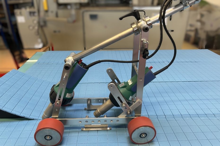 Het apparaat is voorzien van twee heteluchtblazers en kan in minder dan een dag meer dan vijf kilometer shockpads lassen. De handbediende machine trekt en drukt de banen tegen elkaar en zorgt voor een sterke, gelijkmatige verbinding. Volgens Thomas Frey, Application Development Manager bij Sekisui Alveo, zorgt dit voor een sneller en preciezer resultaat dan bij het gebruik van tape.