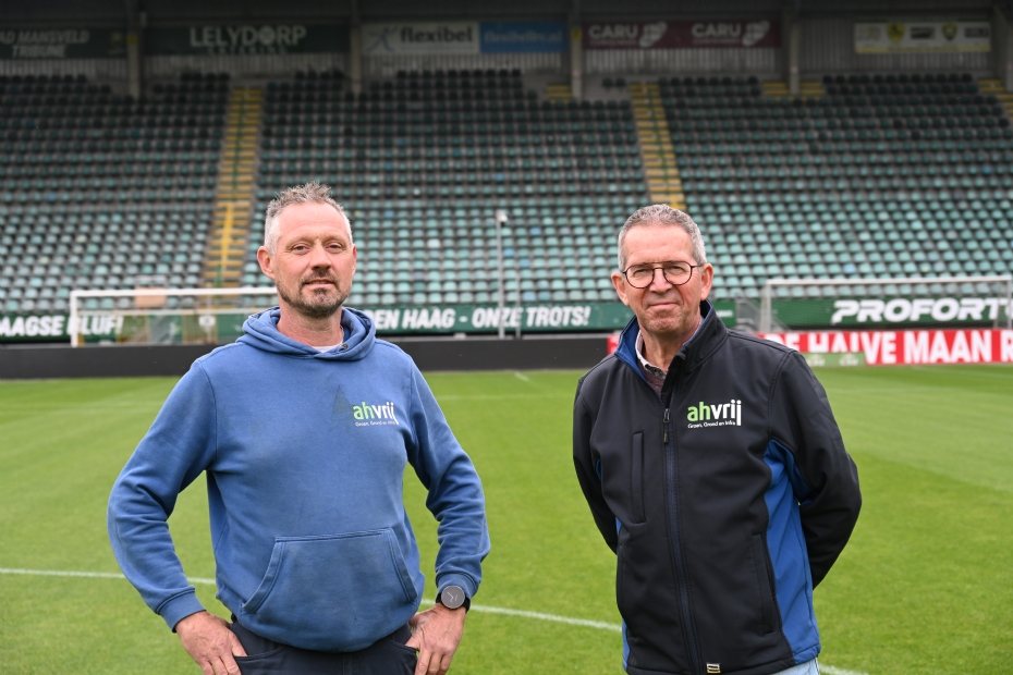AH Vrij, het bedrijf waarbij het grasteam van ADO Den Haag en Sparta werkzaam is, is sinds jaren verantwoordelijk voor beide velden, en bij ADO daarnaast ook voor de trainingsvelden. Dat is een uitdaging, vooral omdat beide hoofdvelden eigenlijk op alle fronten anders zijn aangelegd. Bij ADO ligt een ingezaaid veld, bij Sparta een zode. Wel zijn beide velden uitgevoerd als Tarkett Grassmaster-veld. De keuze voor inzaaien werd bij ADO gemaakt in 2020, in coronatijd. Bij Sparta moest in 2022 een zode worden gelegd vanwege de beperkte tijd tussen competities. Slootweg en Videler hebben een duidelijke voorkeur: 'Als je voldoende tijd hebt, is zaaien altijd de mooiste optie', zegt Slootweg. 'Je weet precies wat je erin stopt en hoe het veld reageert. Bij een zode komt er een stukje van andermans bodem mee. Dat maakt het lastiger.' Videler vult aan: 'ADO ligt op zand. Dat blijft onder alle omstandigheden luchtig en stuurbaar. Sparta heeft een zode met een iets hoger leem-lutumgehalte. Dit wordt in de zomer na het afscheren droog en hard en in het najaar houdt het iets langer vocht vast als er weer gras op staat.' Slootweg durft het zelfs te vergelijken met Fimo-klei: 'Dat keiharde spul waar kleuters mee spelen.'