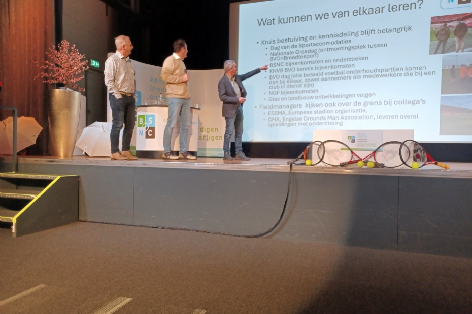 Tijdens een van de inhoudelijke deelsessies over veldonderhoud deelden specialisten Mark Valstar (gemeente Westland), Henk Slootweg (AH Vrij) en Paul Baas (De Enk) hun ervaringen met de nieuwste ontwikkelingen op het gebied van grasbeheer. Centrale boodschap: stadiontechnologie en data-gedreven onderhoud vinden steeds sneller hun weg naar de amateurvelden. Door de inzet van sensoren, weerstations, draintalentsystemen en elektrificatie van machines ontstaat een veel preciezer beeld van wat een veld nodig heeft. Daardoor kunnen clubs efficiënter beregenen, beter inspelen op klimaat en belasting, en onderhoud op afstand monitoren. Slootweg en Baas benadrukten dat innovaties vaak bij bvo's ontstaan, zoals belichtingsunits, nieuwe graszaadmengsels of hybrideconstructies, maar uiteindelijk doorstromen naar gemeenten en verenigingen. Valstar gaf aan hoe waardevol die kennisdeling is, vooral nu vrijwilligers wegvallen en budgetten onder druk staan. Door samen te werken en data te gebruiken, ontstaat een beter begrip van veldbelasting, kwaliteit en onderhoudscycli. Zo komt hoogwaardige natuurgraskwaliteit steeds dichter bij de breedtesport.