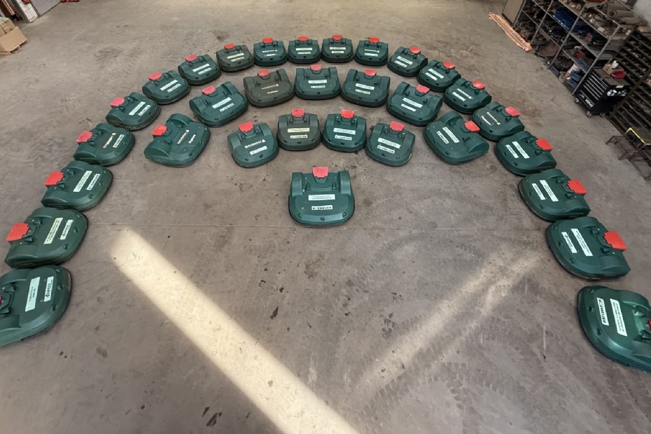 Bij twaalf van de veertien verenigingen is ook het maaien onderdeel van het contract. Dat gebeurt volledig met robotmaaiers. 'Zeven jaar geleden zijn we daarmee begonnen', vertelt Meijerhof. 'We maaiden eerst met reguliere machines, maar daar zijn we helemaal van afgestapt.' Vrijwilligers moesten soms even wennen. 'Maaien vinden mensen vaak mooi werk. En als de oude maaier kapotgaat, is de eerste reactie: we kopen een nieuwe.' Toch slaat de twijfel meestal om als de robot eenmaal draait. 'Zo'n veld ligt er altijd strak bij. Die machine is niet ziek en slaat geen dag over. Als je hem goed instelt en netjes behandelt, doet hij gewoon wat hij moet doen.' De robots zijn eigendom van Hofmeijer en worden ook technisch door het bedrijf beheerd. Verenigingen doen het dagelijkse schoonmaken; eens in de paar weken komt Hofmeijer langs voor controle en, indien nodig, nieuwe mesjes. 'We maken de robot ook echt van de club', zegt Meijerhof. 'Er zit een clubsticker op, er hangt een instructiebord bij. Dan gaan vrijwilligers hem zien als hun eigen machine.'