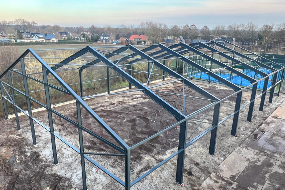 Dennis Kloosterman, bedrijfsleider van Allesvoorpadel, vertelt: 'Onze samenwerking met TV Keltenwoud gaat al terug tot 2020 voor een uitbreiding. In 2022 realiseerden we voor hen de eerste padelbanen, gevolgd door de installatie van een tijdelijke mobiele padelbaan. Door drie nieuw te bouwen padelbanen te overkappen, zet de vereniging nu een volgende, strategische stap. Waar de focus eerder lag op uitbreiding van capaciteit, draait het project in Bennekom nu om optimalisatie: meer speeluren, minder afhankelijkheid van weersomstandigheden en een betere inpassing in de omgeving. De vraag naar speeltijd blijft groeien en daarmee voor hen ook de noodzaak om slim te investeren.'