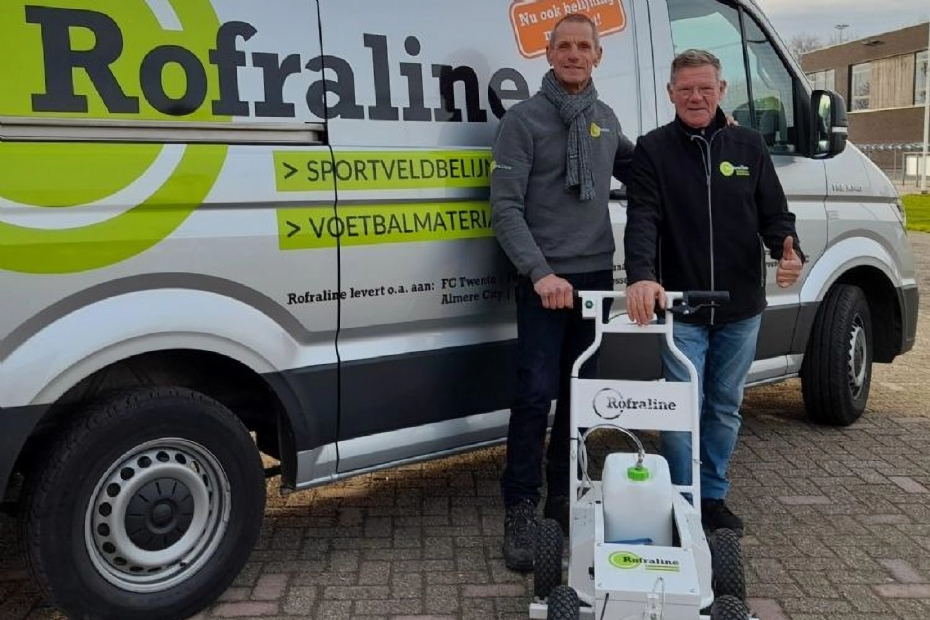 Het groeiende tekort aan vrijwilligers bij amateurclubs vormde de aanleiding voor Grotenbreg en Kuster om zich in robotbelijning te gaan verdiepen. Dit leidde tot een samenwerking met fabrikant TinyMobileRobots. Deze Deense producent maakt robotbelijners die op basis van nauwkeurige GPS-technologie na één inmeting zelfstandig lijnen kunnen trekken. Helemaal autonoom zijn ze echter nog niet. 'Je moet hem wel met een tablet activeren, en je moet wel in de buurt blijven. Op afstand kan het (nog) niet', legt Grotenbreg uit.