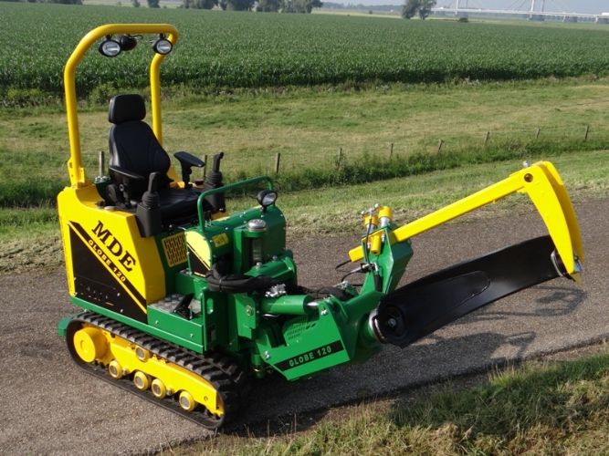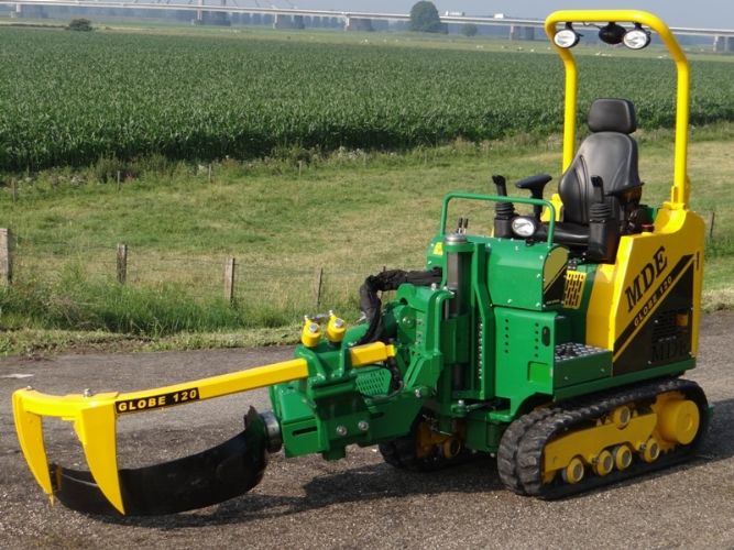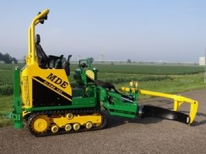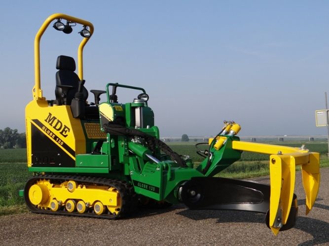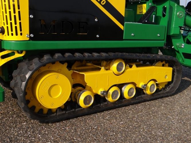 De nieuwe MDE rooimachine is uitgevoerd met een high speed rups onderstel. Zware tandwielaandrijvingen met daarop een groot kettingwiel drijven de beide tracks aan. Dit zorgt voor een dubbel zo hoge snelheid van ongeveer 12 km/uur. De onderrollen zijn met olie gevuld en pendelend gemonteerd, zodat er een geveerd onderstel ontstaat met een goed rijgedrag. Vanaf de bestuurdersplaats kun je met twee joysticks de gehele machine aansturen. De machine is daarbij traploos zonder schokken met beide handen te bedienen door de joysticks.