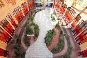 Het nieuwe Isala-ziekenhuis in Zwolle is ontworpen als een beterhuis. Diverse binnentuinen in het ziekenhuis, zogenoemde atria, vormen de overgang tussen de groene weelderige natuur rondom het gebouw en de organische omgeving binnen.